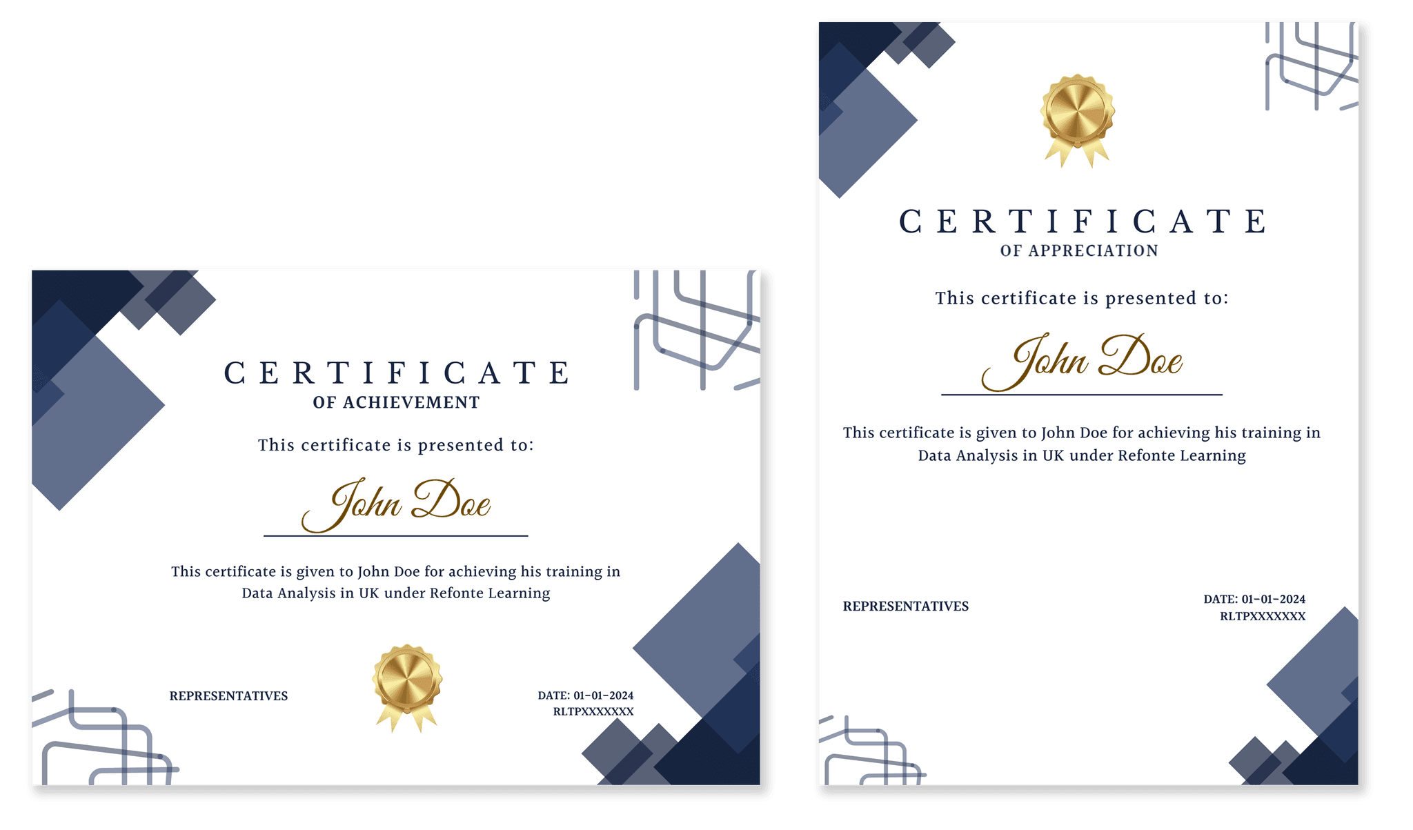 Upon successful completion of the program, Refonte Learning offers two certificates: a Training Certificate and a Certificate of Internship. Students who demonstrate outstanding performance may receive a Letter of Recommendation and a Certificate of Appreciation for their achievements. In addition, top performers will be rewarded with exclusive prizes such as Amazon vouchers, gift hampers, and personalized T-shirts.